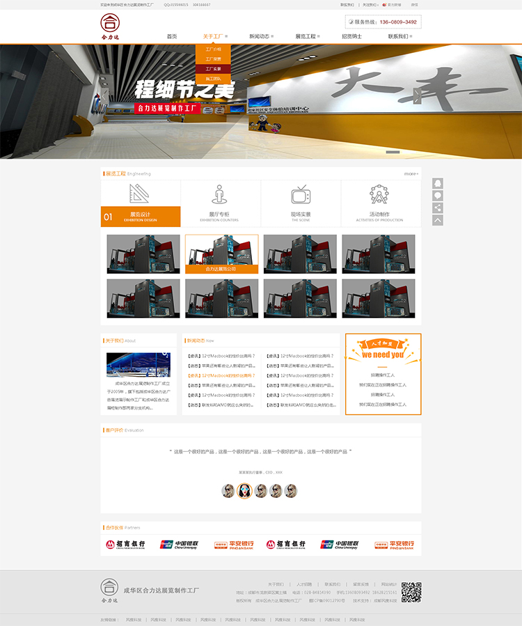 成都合力达展览展示制作有限公司成立于2005年,是一家纯制作公司.旗下包括成都合力达广告展览展示制作工厂和成都合力达展柜制作部两家分支机构。公司是专业从事展览展示、展厅、展柜、专卖店、商业空间、户外发布等施工为一体的展示制作服务公司。(成都成华区展览工厂)